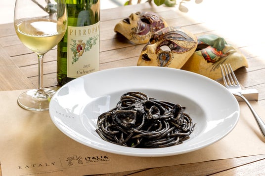 水の都ヴェネツィアの名物料理。真っ黒なイカスミをからめたパスタは、味わい深く白ワインとの相性も抜群。