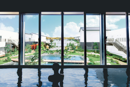 約5,000坪の広大な敷地を誇る関西最大級の温泉型テーマパークです。天然温泉の露天風呂をはじめ、9種類のお風呂や多彩なフォトスポット、アミューズメントエリアのほか、飲食、ビューティー、リクライナーなどさまざまなサービスを取り揃えています。屋上には約1,000坪の日本庭園も広がっています。また、無料のアメニティも充実しており、手ぶらでご来館いただけます。