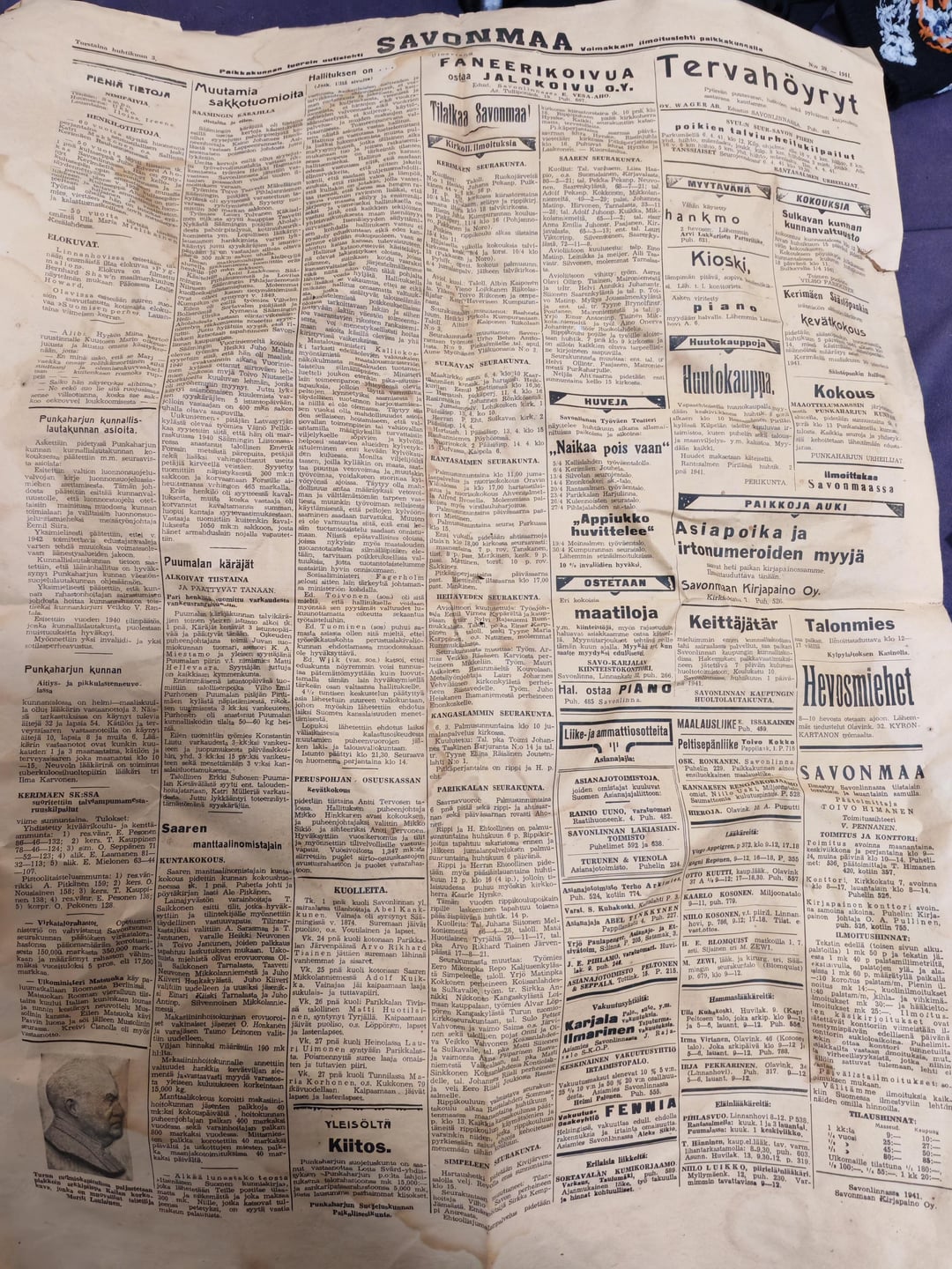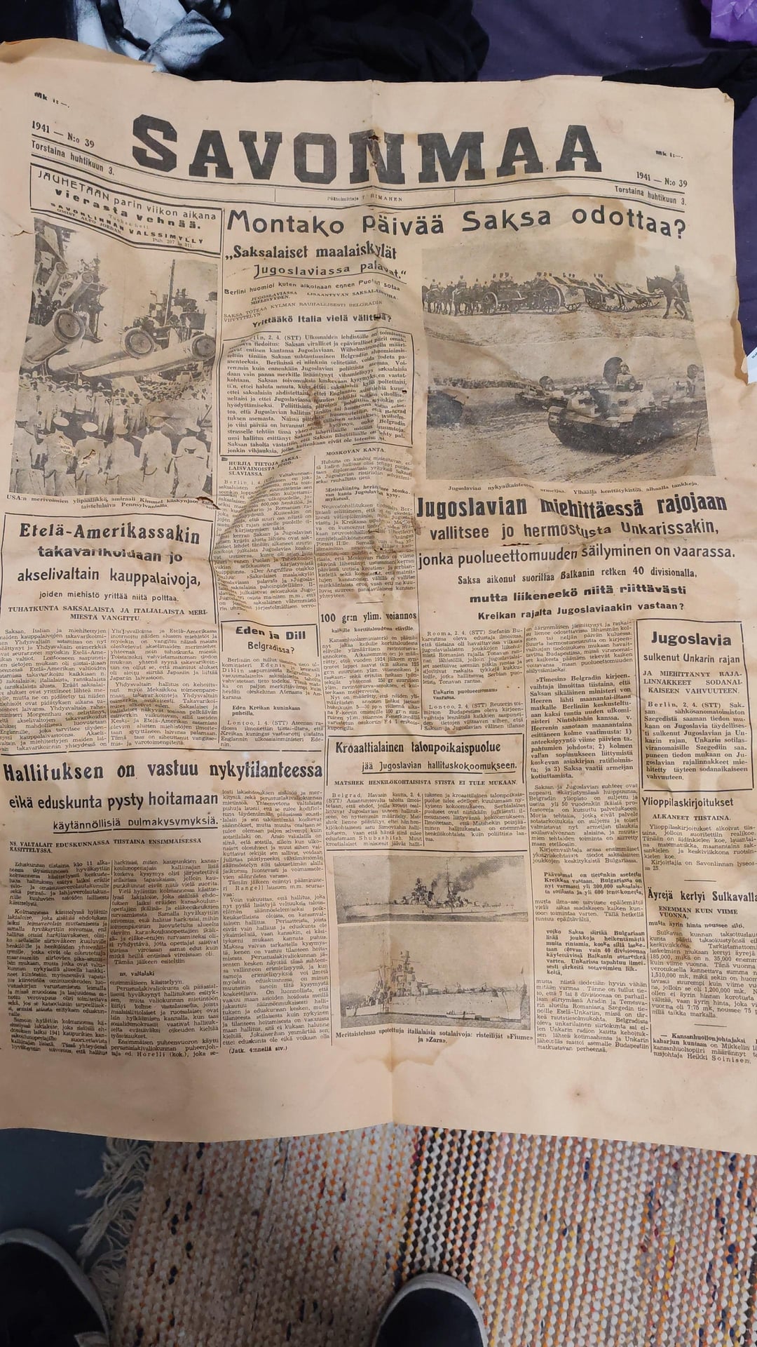 小屋から隠していた新聞と日記を見つけました。新聞の日付は1941年4月3日です