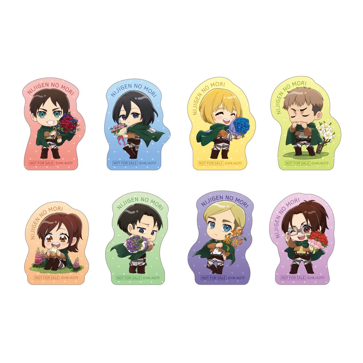 「進撃の巨人ミステリークエスト ニジゲンノモリ編/自宅編」それぞれの参加者にはオリジナルダイカットステッカー(全8種/ランダム)をプレゼントいたします。