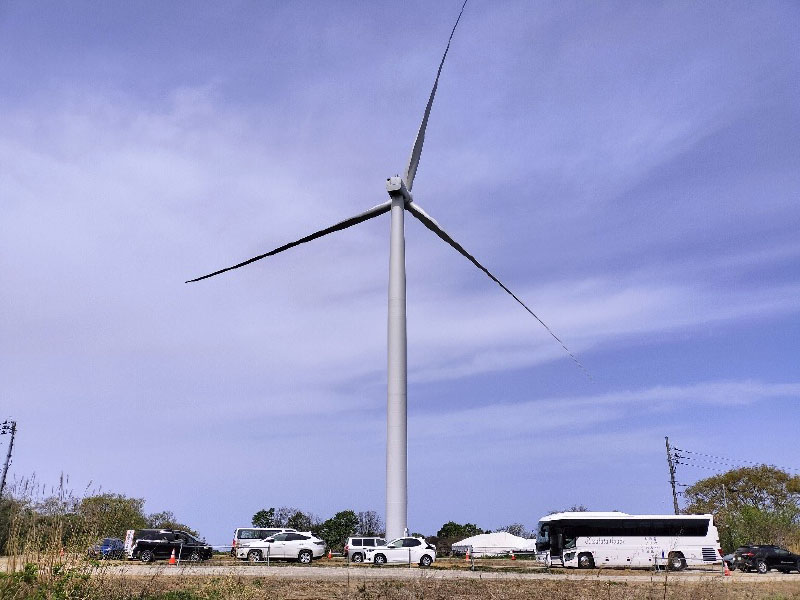 ユーラスエナジーホールディングスの諏訪部哲也社長は、この風車の開発段階から事業に関わっている。23日の竣工式のあいさつで、諏訪部氏は「工事期間中、幾多の試練を乗り越えられたのは、施工会社や風車メーカーとの緊密な連携に加え、現場スタッフが地域住民と積極的に対話を重ね、信頼関係を築き上げた賜物であります」と強調した。由利本荘市の佐々木司副市長は、ユーラスエナジーが地域貢献基金などを通じて市の環境保全や地域振興に寄与してきたことに謝意を表した。