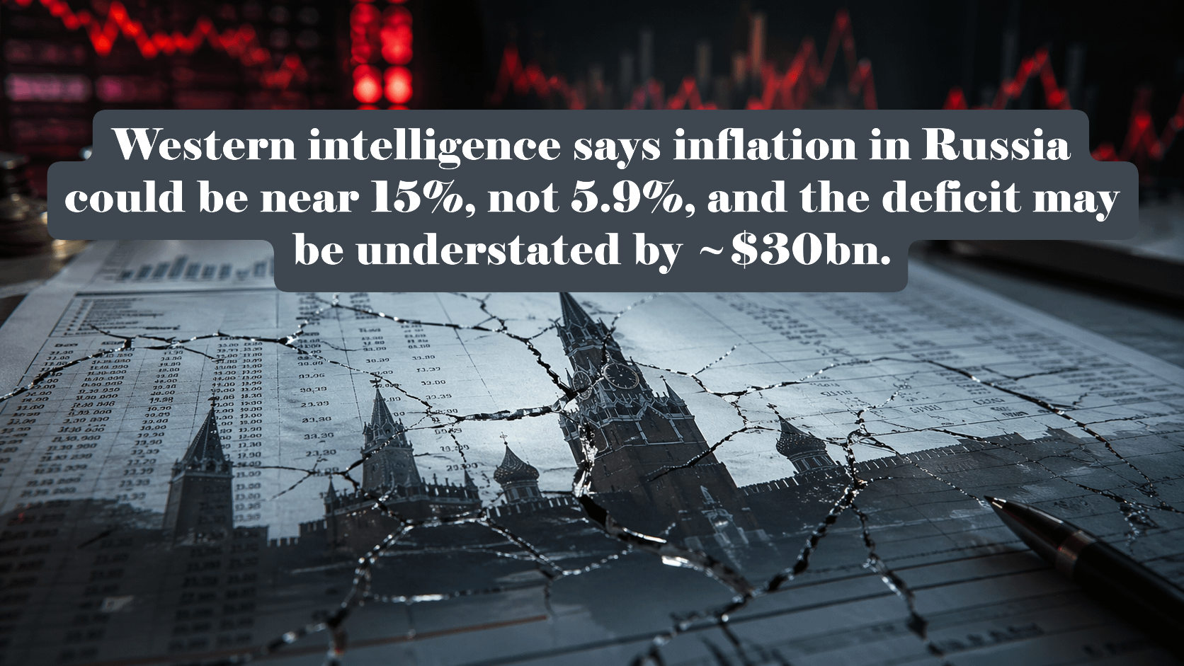 ロシアの「回復力のある」経済は統計上の幻想かもしれない。西側情報機関は、インフレ率は5.9%ではなく15%近くになる可能性があり、財政赤字は約300億ドル過小評価される可能性があると述べている。戦争支出は成長ではない。それは借金、汚職、そして戦場の焼失率だ。2026.04.24