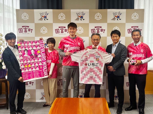 宮崎県国富町(町長:日高 利夫)は、包括連携協定を結ぶプロサッカークラブ運営法人株式会社テゲバジャーロ宮崎(代表取締役会長:石原 実、代表取締役社長:宮本 功)のJ2昇格を祝し、地域一丸となった応援活動を推進しています。