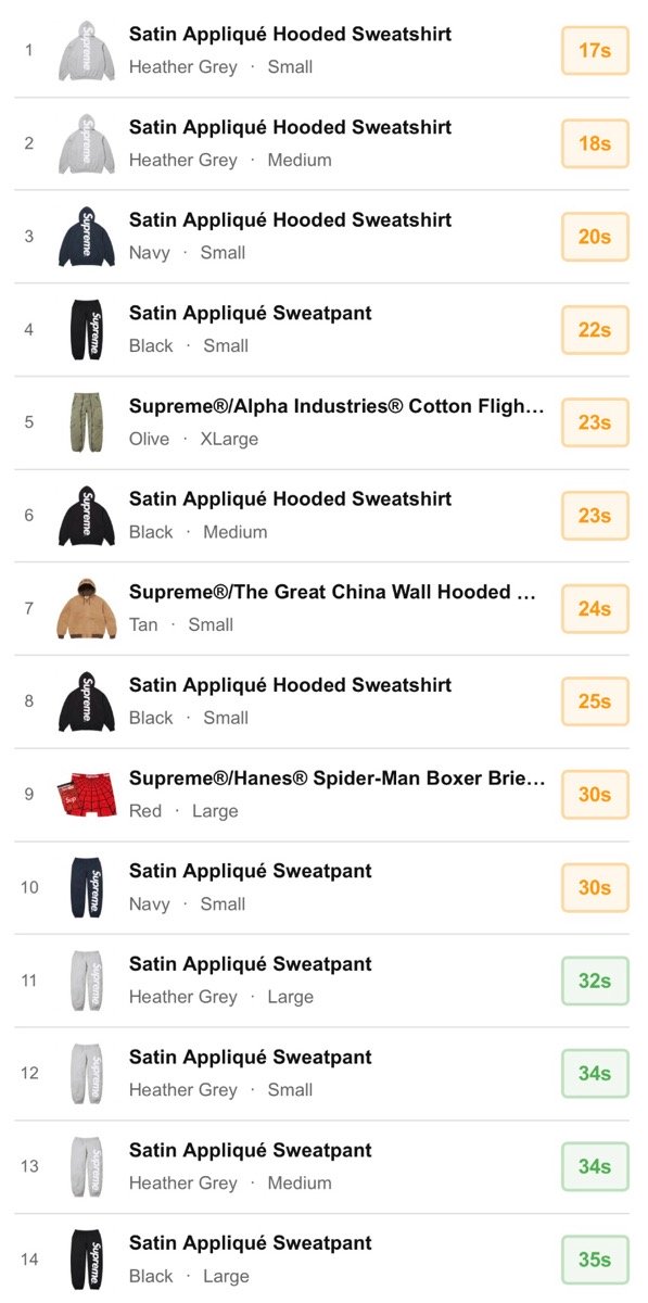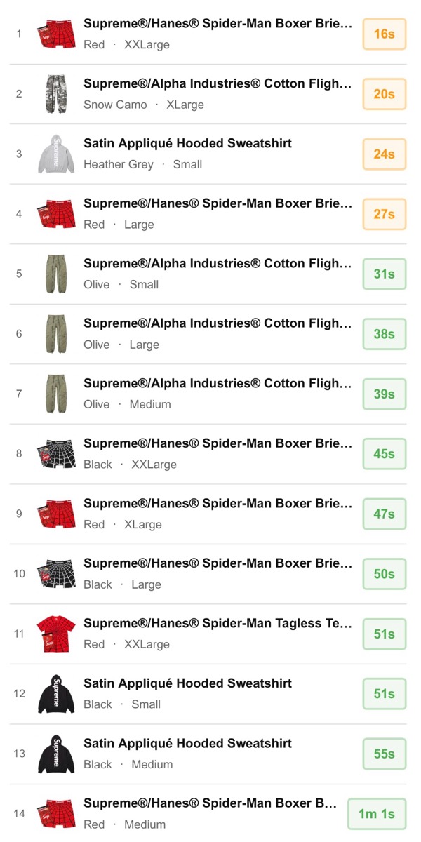 シュプリーム 2026年春夏コレクション WEEK9 海外オンラインの完売スピードランキングが公開。【2026SS】