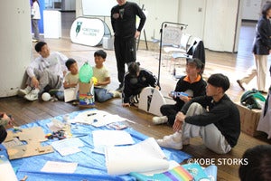 「10年後の神戸にあったらいいもの・こと」をテーマに、廃材を使って参加者が自由にアイデアを出し合い、実際に形にする取り組みが行われました。こどもたちが主体となって考え、周囲と協力しながら表現する様子が見られ、未来を自分ごととして捉えるきっかけとなりました。