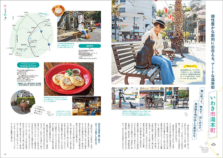 街めぐりでは、詩人・草野心平が愛した「川内村」、ロマンあふれる石橋をめぐる「福島市」、アートな温泉街「いわき市湯本町」、歴史と新スポットが融合する「磐梯町」を紹介します。