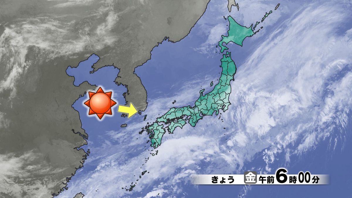 前日に天気をぐずつかせた低気圧や前線の雲は東に進んでいます。県内は、今朝はまだ低い雲が残っていますが、このあとは朝鮮半島方面に広がる晴天のエリアの中に入っていき、日中は日ざし十分の陽気になりそうです。