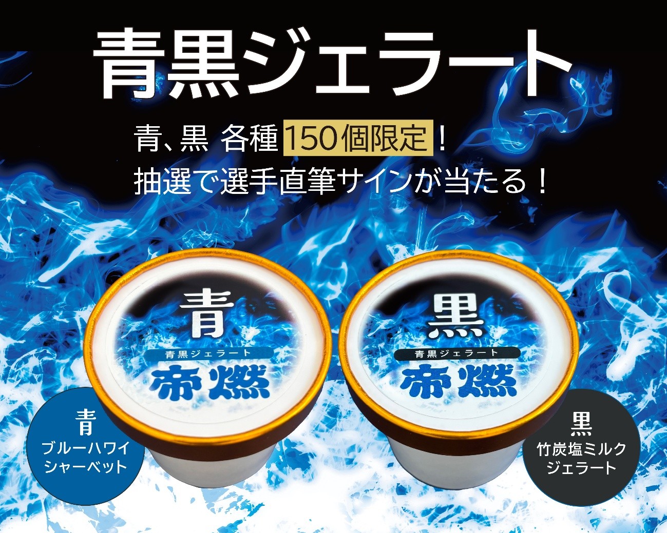 奈良の人気店「mamma」の世界大会受賞ジェラートと「帝燃」がコラボした限定「青黒ジェラート」!(青:ブルーハワイシャーベット、黒:竹炭塩ミルクジェラート)ぜひご賞味ください。