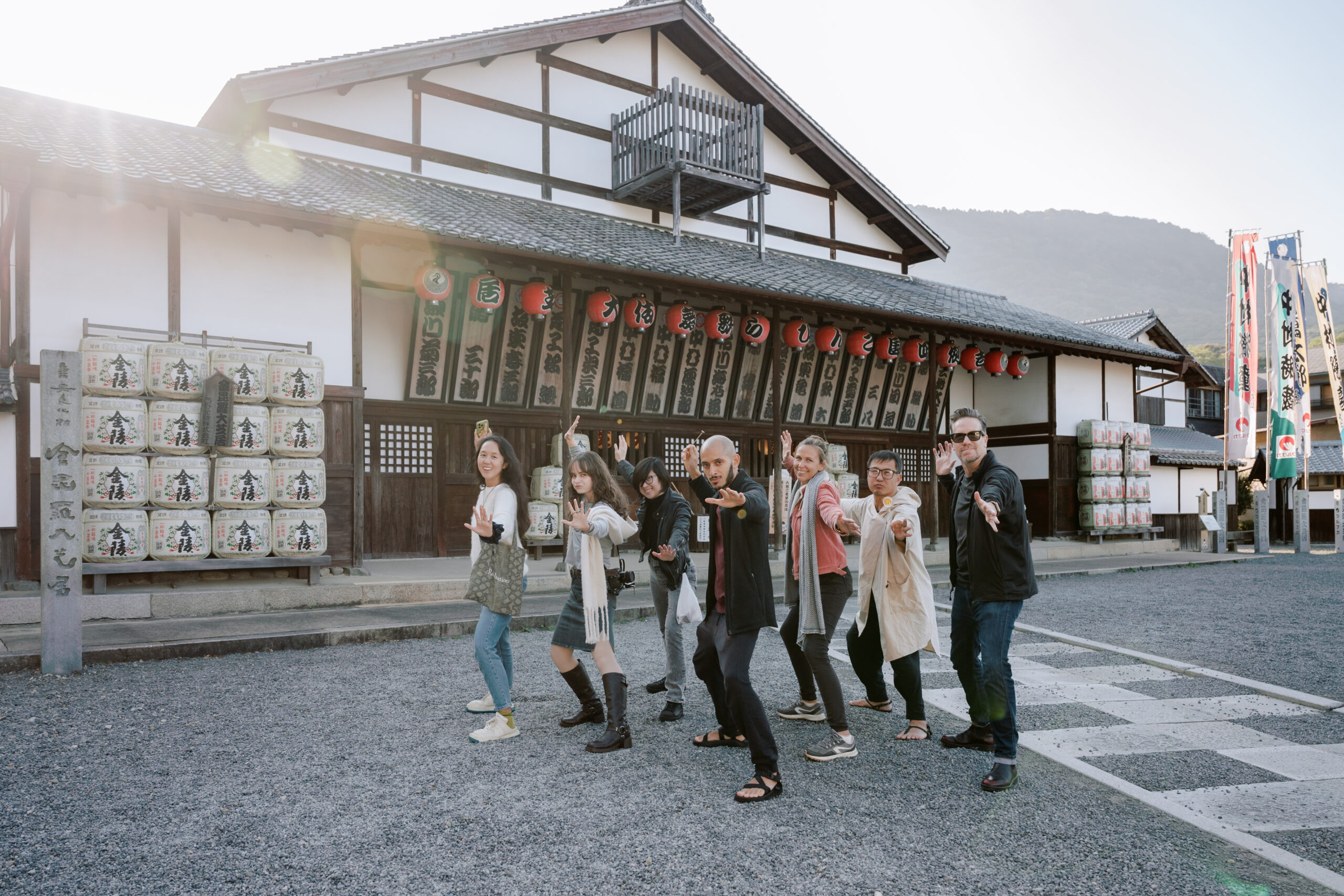 「暮らし」を想像するコンテンツ うどん打ち体験や廃ビル再生プロジェクト(HAKOBUNEビル)の見学を通じ、町の文脈を理解。翌朝の「早朝参拝」では、観光地としての表層ではない、歴史の深さを体感します。