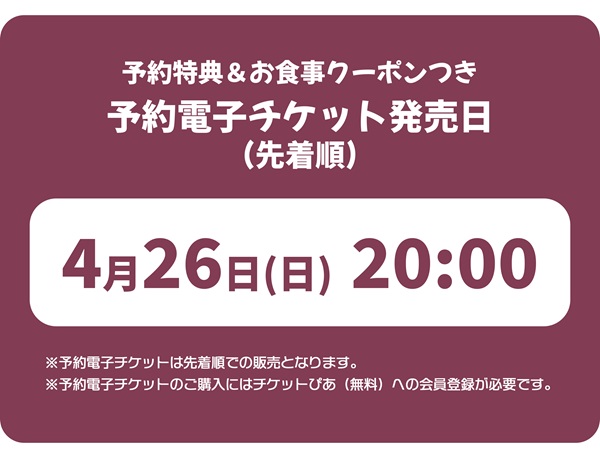 ※当日券には「予約来場特典」「お食事クーポン」は付属しておりません。あらかじめご了承ください。