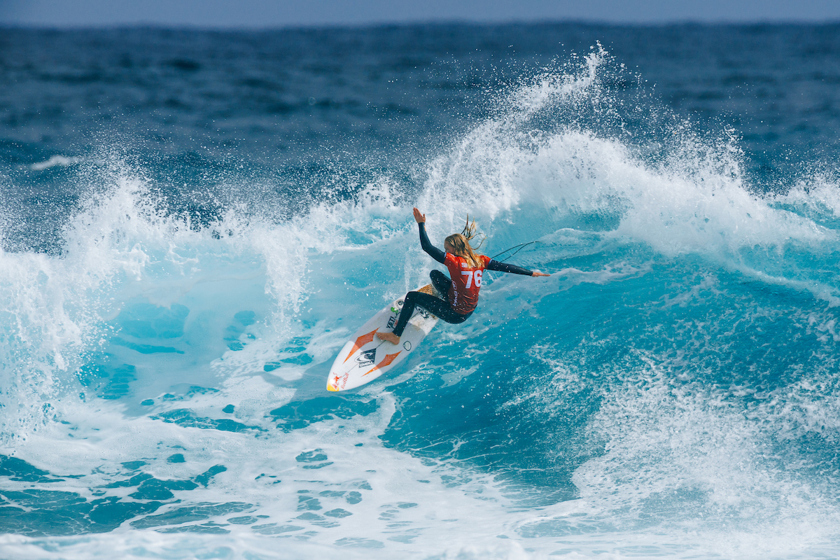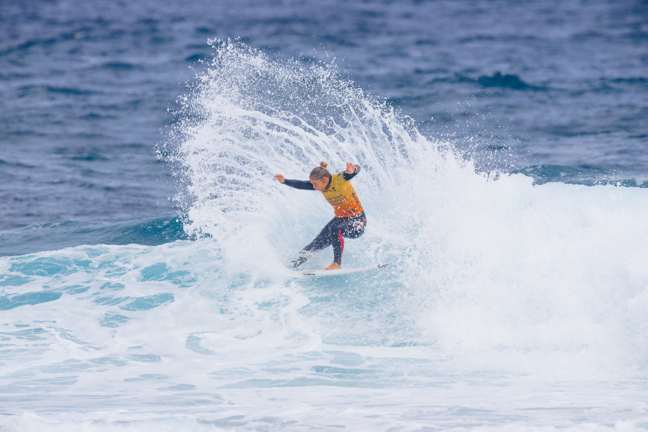 HEAT 1: Sawyer Lindblad (USA) 11.70 DEF. Gabriela Bryan (HAW) 11.50