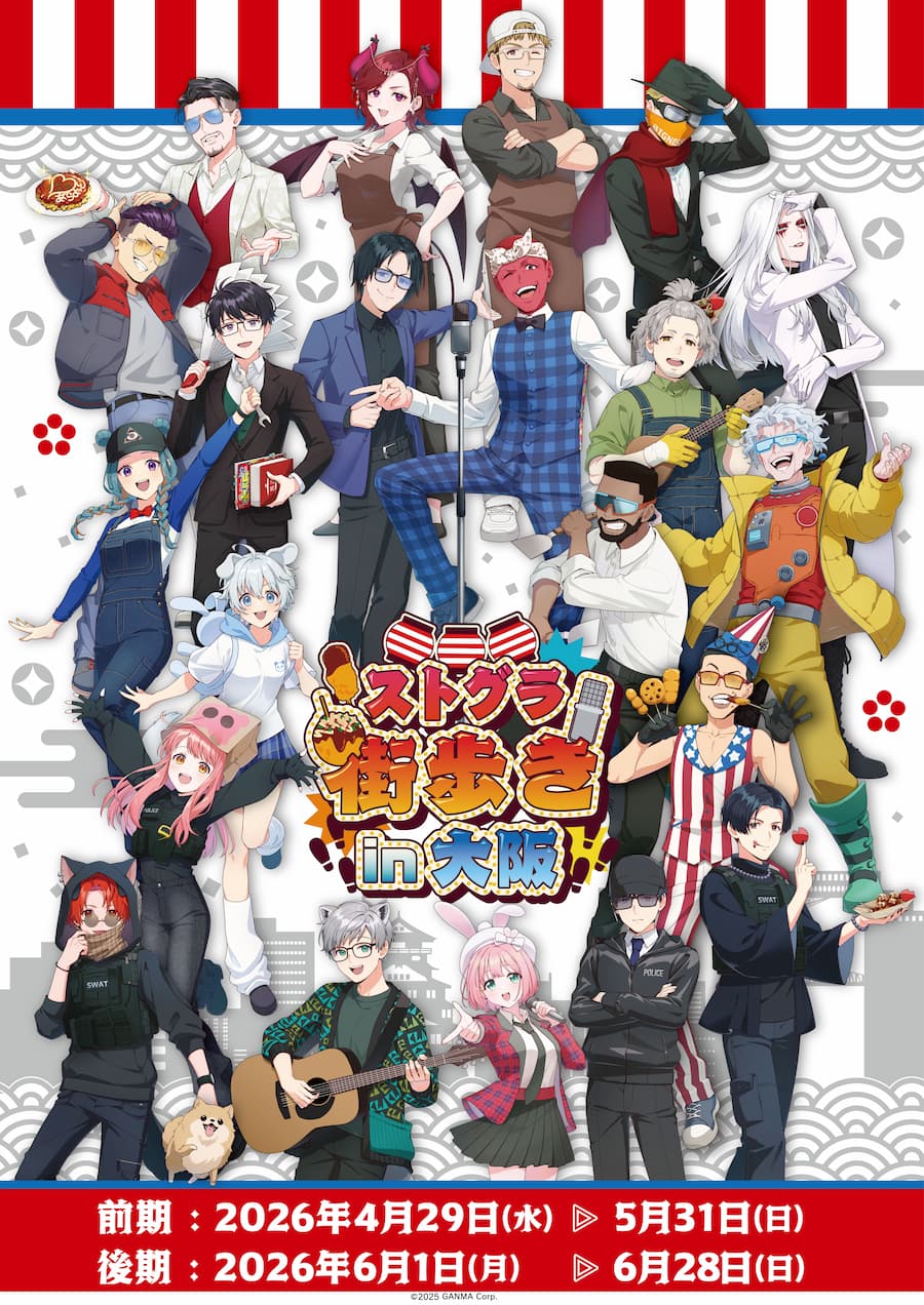 配信者たちが独自のキャラクターを作成し、仮想現実の街で生活しているようにロールプレイするリアリティーショーコンテンツ「ストグラ」。その世界観を、実際の街で体験できるイベントです。東京で開催された第一弾に続き、2026年4月29日(水)からは、大阪市内を舞台にした「ストグラ街歩き in 大阪」がスタート。