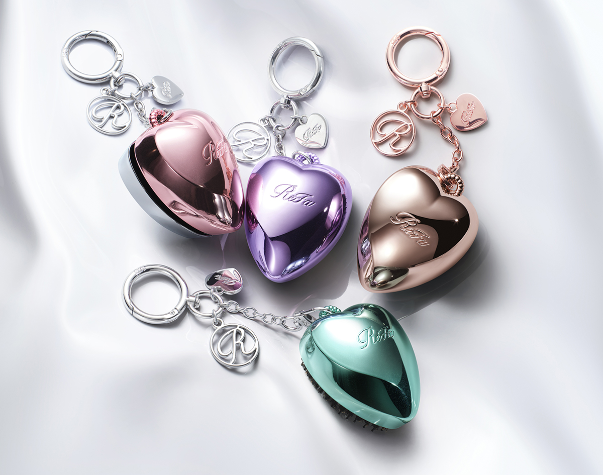 MTGの美容ブランド「リファ(REFA)」は5月中旬から、ヘアケアの新たな美を提案するプロジェクト「リファ ビューティー ショーケース」の第2弾製品として、バッグに付けて持ち運べるチャーム仕様のヘアブラシ“ハート ブラシ チャーム”(1万1000円)と、ヘアコーム“アイラ ウィズ”(3630円)の新色を発売する。同社が協賛し4月25日からスタートしたTWICEの日本ツアー会場では特設ブースを用意し、両製品の先行予約受付を行っている。両製品のカラーはヘアケアカテゴリーのミューズを務めるTWICEの日本人メンバーでMISAMOとしても活動しているMINA、SANA、MOMOのメンバーカラーを想起させるエムピンク、エムミントグリーン、エムパープルで、“ブラシ チャーム”はほかにローズゴールドも用意している。
