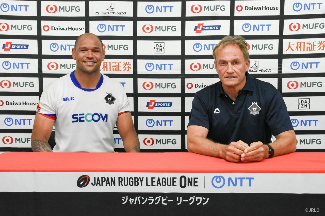 狭山セコムラガッツ狭山セコムラガッツのスコット・ピアス ヘッドコーチ(右)、フェトゥカモカモ・ダグラス バイスキャプテン狭山セコムラガッツ