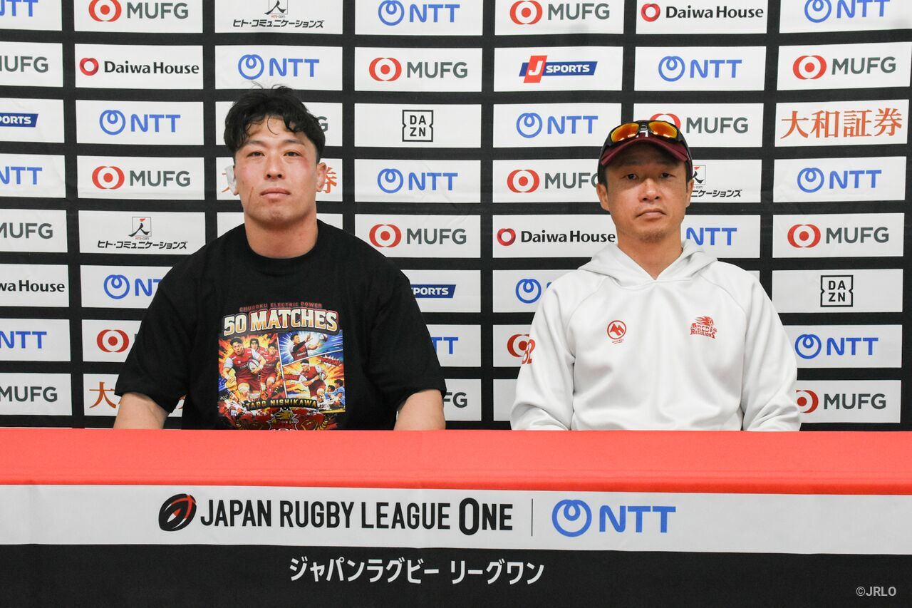 「コイントスの前は風が逆で、前半は風下でプレーする想定でした。風下のほうがボールは動かしやすいと考えていました。後半はエッジからエッジへうまく展開できたと思います。中国電力レッドレグリオンズ(以下、中国RR)さんは今季、けが人が多いこともあり、最後の20分は運動量が落ちると見ていましたが、最後までパフォーマンスは落ちませんでした。この試合では(チェイス・)ティアティアと忽那(鐘太)のキックが非常に良く、テリトリーを確保できていたと思います。これまでキッキングゲームには課題がありましたが、この試合は今季で最も良いエリアマネジメントができました」
