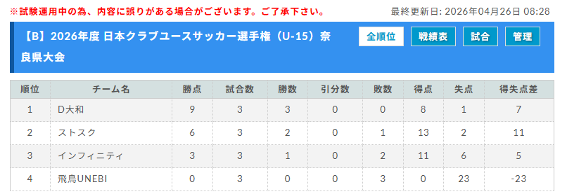 B 4/25全試合終了 D大和、ストスクが2次リーグ進出