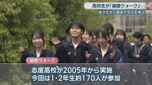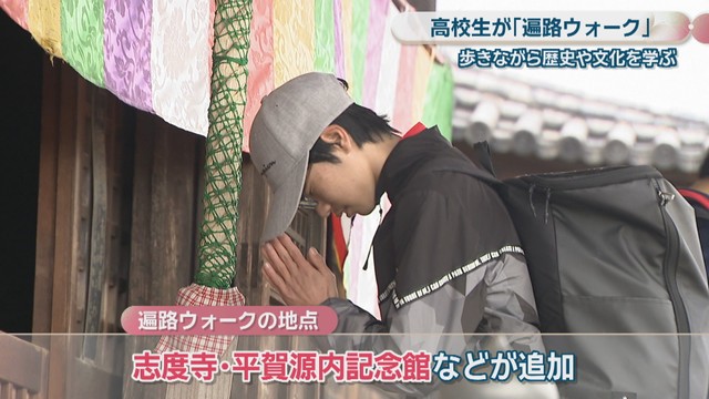 香川県さぬき市の志度高校の生徒が、歩きながら歴史や文化を学ぶ「遍路ウォーク」をしました。
