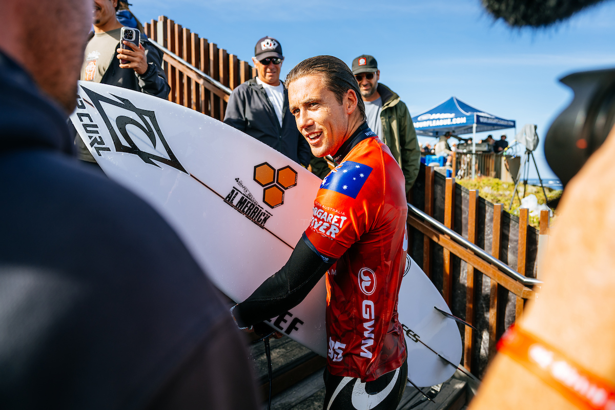 「まずは神にこの機会を感謝したい。本当に素晴らしい気分だよ。今の道のりを楽しめている。昨年は大会から離れた辛い一年だったけれど、ようやく戻ってくることができた。ジャージを着て海に入り、ベストを尽くせるのは気持ちが良い。ここでの滞在は最高だった。ワイナリーへ行ったり、あちこちでサーフィンをしたり、ただ楽しんで良い時間を過ごせた。ベルズの前は、自分がどうなってしまうか分からなくて少し怖かった。本当に不安だったけれど、今は調子が良い、イエロージャージを着られるのは嬉しいね。久しぶり。恋しかった。ついさっきまでは親友の一人であるミゲルが持っていたものだけど、ありがたく受け取るよ。ありがとう。とはいえ、これはただのジャージだよ。もっと努力しなければいけないと感じている。一年は始まったばかりだから、気合を入れていくよ」