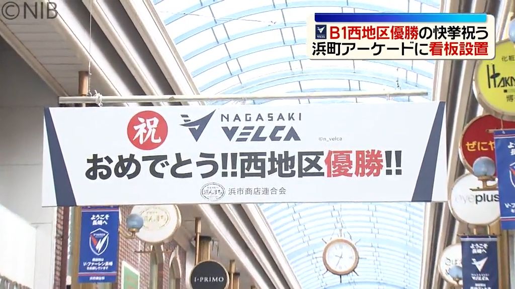 ヴェルカB1西地区優勝 昇格3シーズン目で初!快挙祝い浜町アーケードに看板設置《長崎》