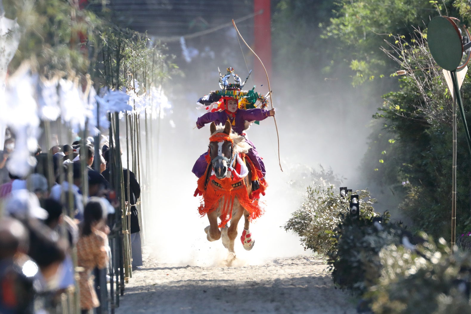 高山流鏑馬の勇壮な演武映像に加え、川内大綱引の象徴である「大綱」や小物の展示、パネルを通して、鹿児島の伝統文化の迫力に触れていただけます。