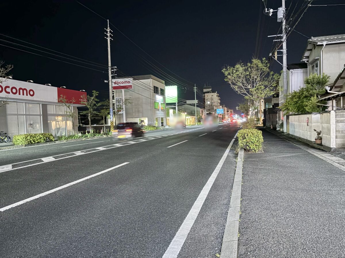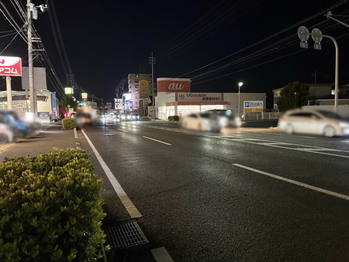 お店から左を見ると「auショップ 岡山大安寺」、「コメダ珈琲店 岡山大安寺店」があります。