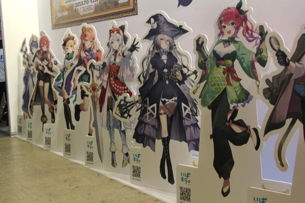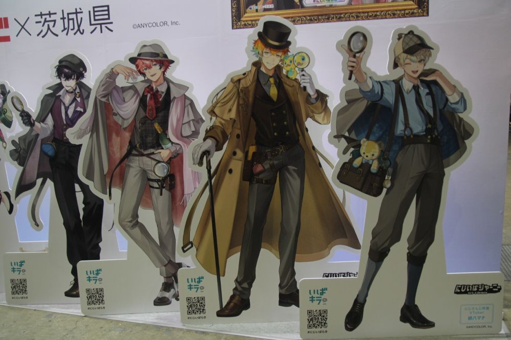 「超サブカル茨城」ブースの正面を飾るのは、にじさんじ所属VTuber11名のパネル。2025年8~9月にコラボイベント「にじいばジャーニー 夏の奥久慈ミッション」を行った「Idios」(小清水透さん、獅子堂あかりさん、鏑木ろこさん、五十嵐梨花さん、石神のぞみさん、ソフィア・ヴァレンタインさん、倉持めるとさん)と、2026年1月~2月に「にじいばジャーニー episode Oriens 結城城下の失踪劇」を展開した「Oriens」(佐伯イッテツさん、赤城ウェンさん、宇佐美リトさん、 緋八マナさん)のコラボ衣装姿のパネルがずらりと並んでいる。