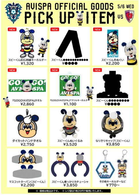 ぜひ5/6(水・休)京都戦にお越しの上、スビーくんグッズを身に着けて熱い応援をお願いいたします!