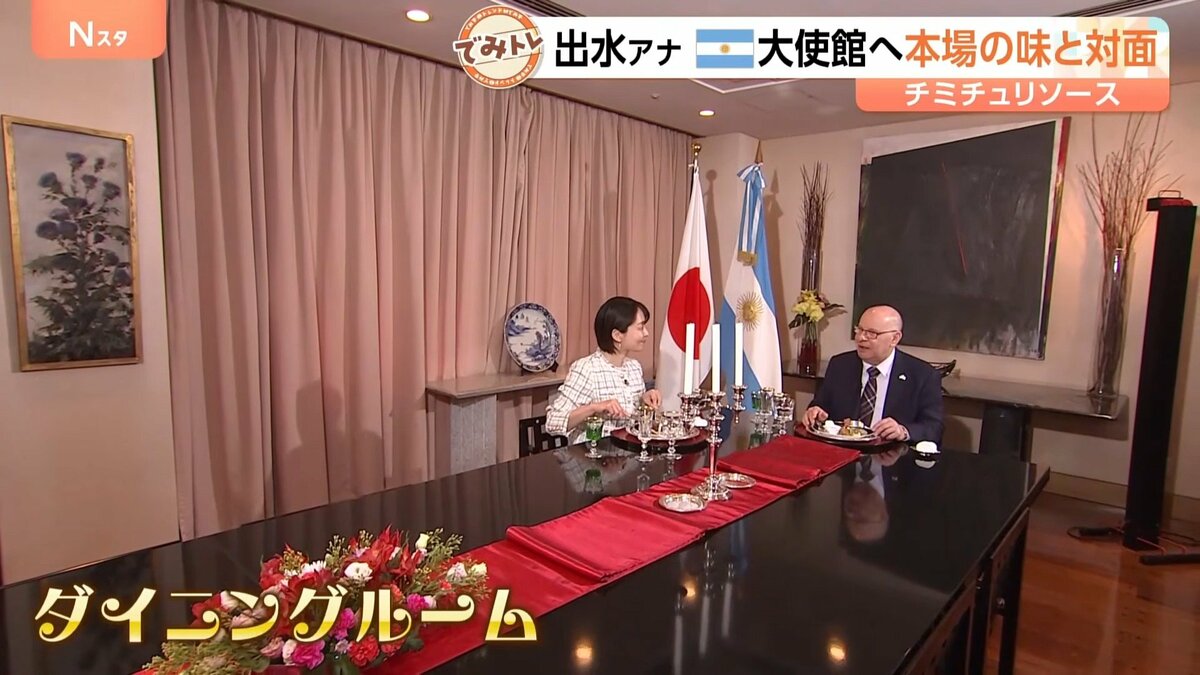 出水麻衣アナが向かったのは、 アルゼンチンではなく、東京・港区にある大使館。テンポーネ駐日大使が出迎えてくれました。