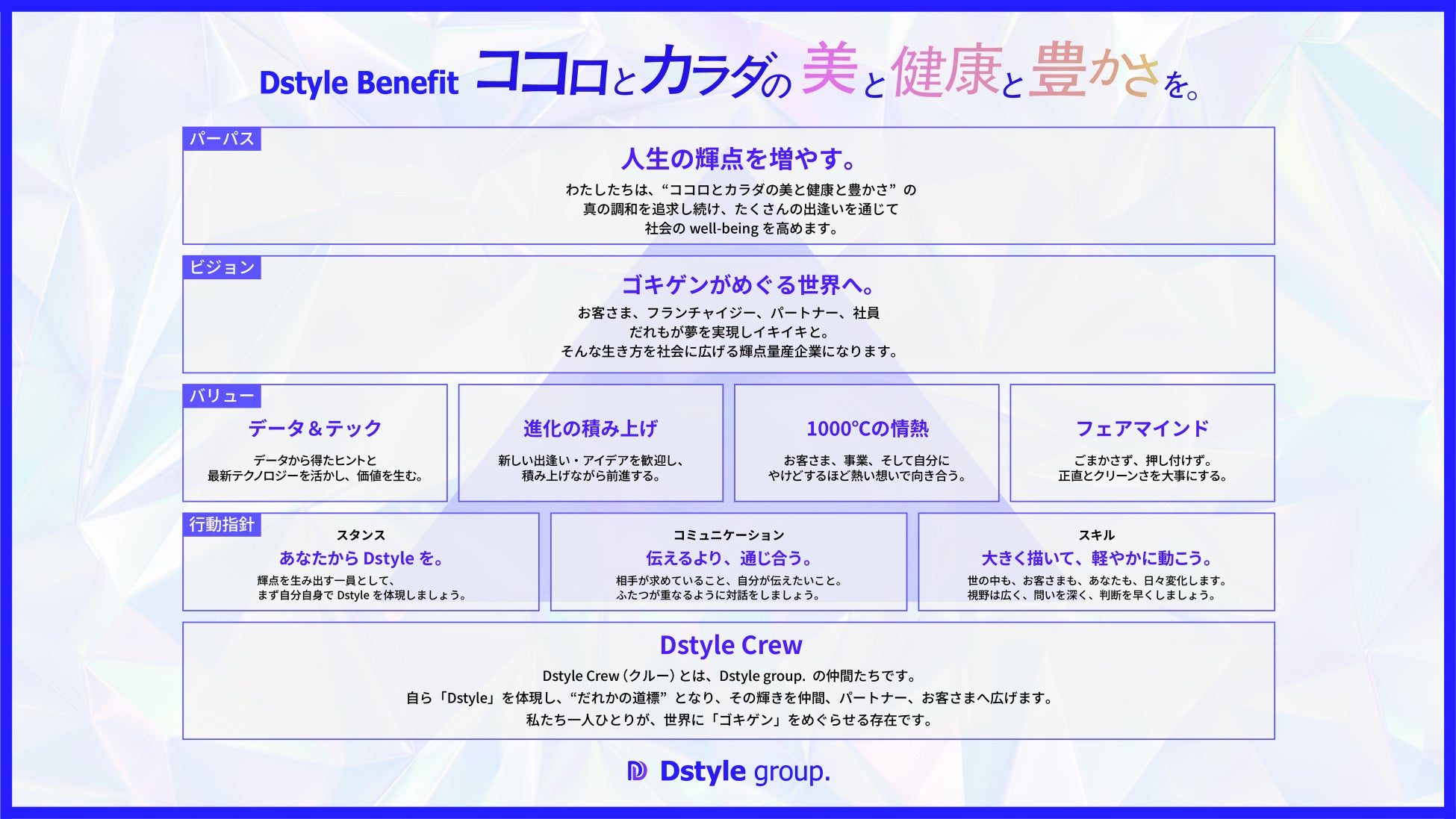 40周年を起点に、Dstyle group.は「美容・健康・生活」を一体で支えるライフスタイルソリューション企業への進化を進めてまいります。
