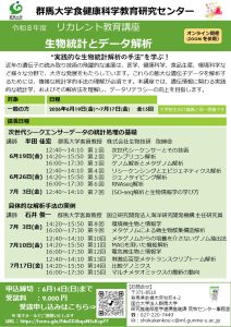 令和8年度リカレント教育講座『生物統計とデータ解析』を開講します。本講座は、2026年6月19日(金)から7月17日(金)に実施します。