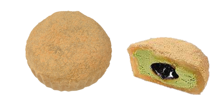 ぷるもち食感のわらび餅に、香りの良い抹茶クリームと黒蜜ソースを包んだ3層構造になっている。きなこを全体にまぶして、香ばしい味わいに仕立てたという。