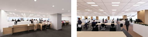 (左)集約型窓口のイメージ、(右)執務室のイメージ