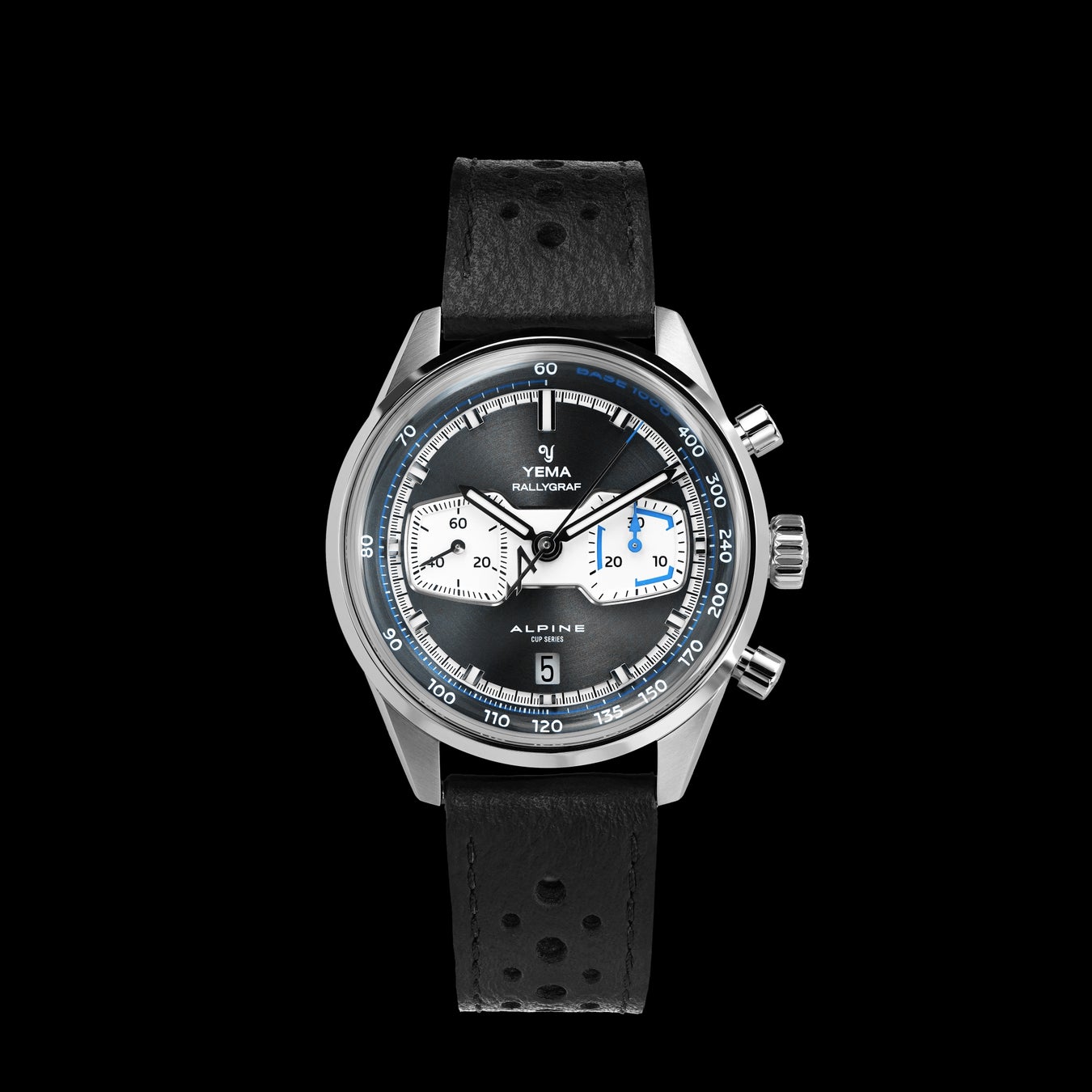 41mmのステンレススチールケースにSellita SW510搭載のメカニカルクロノグラフ。パーフォレーテッドレザーストラップ仕様。60時間パワーリザーブ。100m防水。