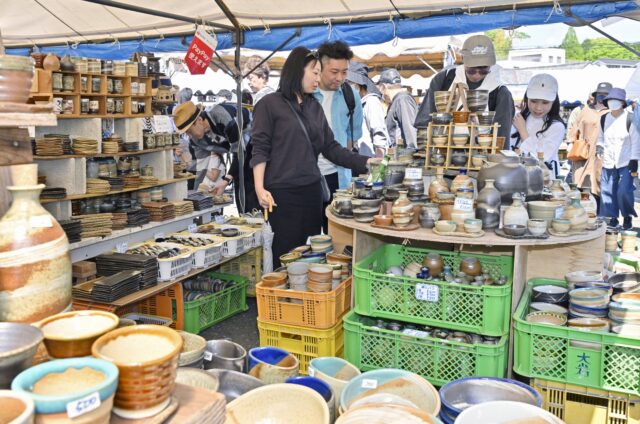 春と秋の年2回開催される「益子焼の里」の恒例イベントが開幕。販売店約50店舗のほか、約700のテントが連なり、伝統的な益子焼からカップや皿などの日用品までが並ぶ。