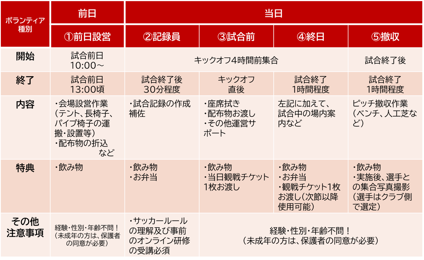 ・「①前日設営ボランティア」は、4月より、10:00開始となりますのでご注意ください