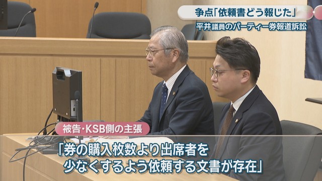 これに対し、被告のKSB側は「依頼書をパーティーの実行委員会が作成したとは報じていない。重要なのは作成者が誰かではなく、パーティー券の購入枚数より出席者を少なくするよう依頼する文書が存在したことであり、収支報告に政治資金規正法違反の疑惑がある旨を報道した」と書面で主張しました。