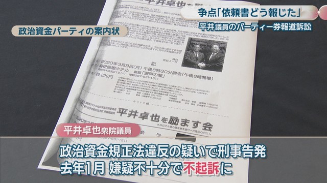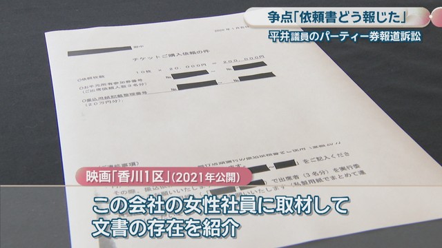 これまでの裁判で、原告の平井議員側は「映画や報道は、パーティーの実行委員会が依頼書を作成、送付したという事実を示し、違法行為を行っているような印象を与えて原告の社会的評価を低下させた」などと主張しています。