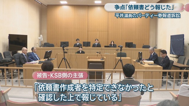 また原告の平井議員側が「女性の所属する会社への裏付け取材を怠った」と主張していることについて、KSBは「告発後の捜査で、検察が女性の会社にパーティー券について聞き取りを行ったが依頼書の作成者を特定できなかった、ということを取材で確認した上で報じている」としました。