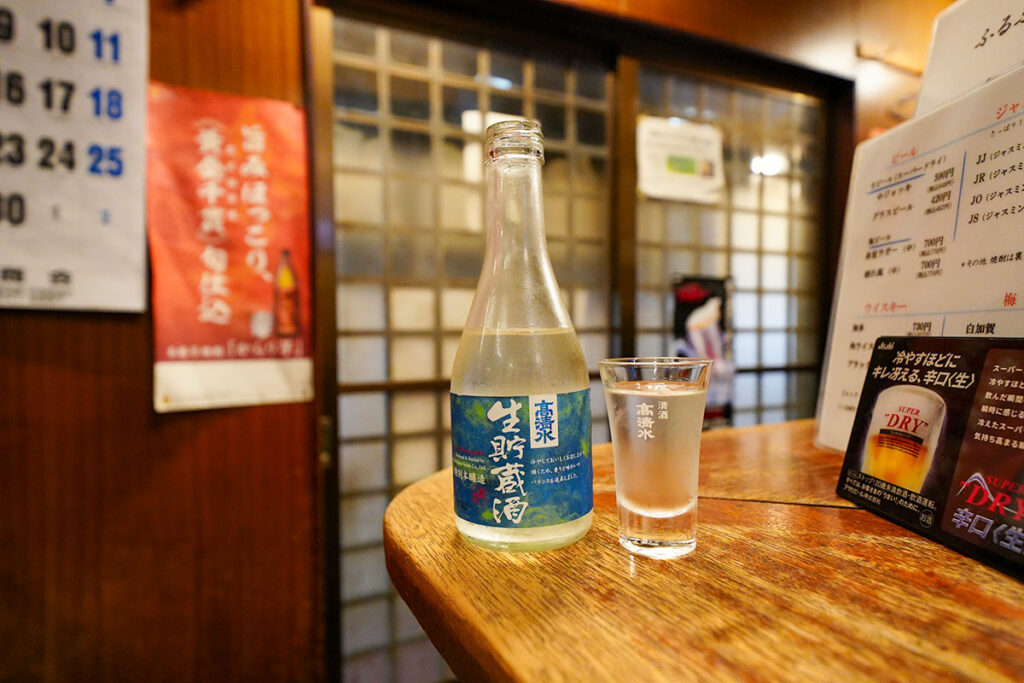 おでんの熱気にあわせて、次は冷酒に切り替えます。秋田の銘酒「高清水 生貯蔵(960円)」を注文。すっきりとした口当たりが、出汁の風味をさらに引き立ててくれます。