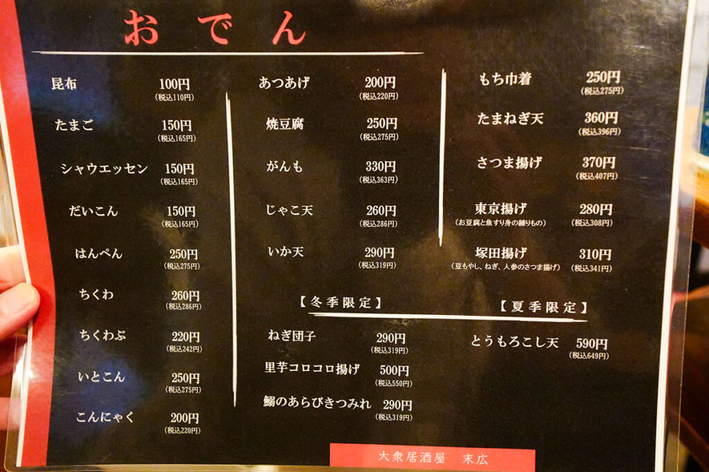 おでんのメニュー店名大衆酒場 おでん屋 末広住所埼玉県さいたま市大宮区大門町1丁目14営業時間18時00分~23時00分