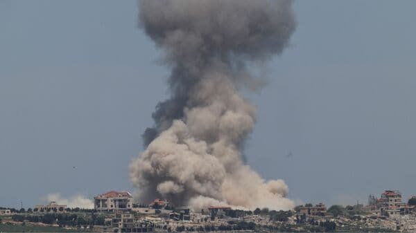 イスラエルからの攻撃で噴煙を上げるレバノン(写真:ロイター/アフロ)