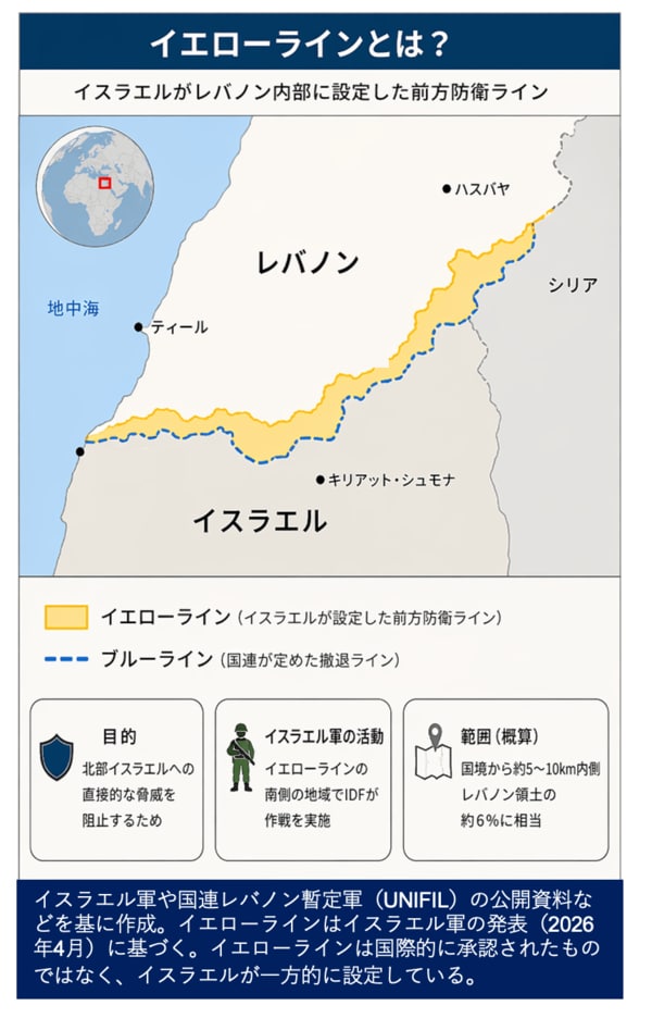 この4月18日、イスラエル軍はレバノン国内に「イエローライン」と呼ばれる軍事境界線を設定したことを明らかにしました。中東のメディア・アルジャジーラによると、国境の北側約10キロの位置に引かれました。ヒズボラがイスラエル側に侵入するのを防ぐとともに、ヒズボラ壊滅に向けた攻撃拠点とするのが狙いです。