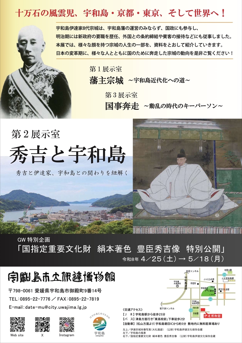 現在、宇和島市立伊達博物館(愛媛県宇和島市)において令和8年度宇和島伊達家コレクション展①「伊達宗城-幕末の賢侯×政界の雄-」が開催中です。8月31日(月)まで。