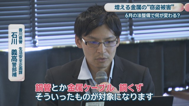 こうした金属の窃盗や転売を防ごうと2026年6月、いわゆる「金属盗対策法」が施行されます。香川県警は周知のため、29日、高松市の金属買い受け業者に対して説明を行いました。