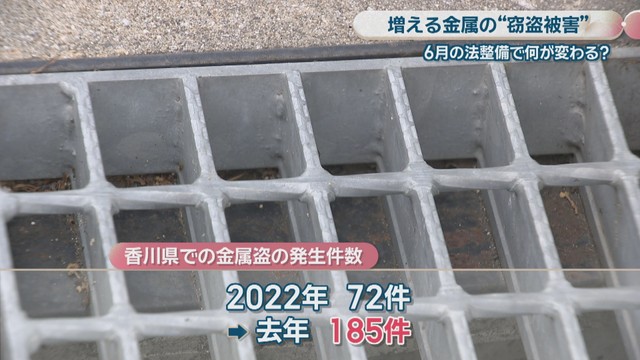 香川県警によると、県内で発生した金属盗の件数は2022年は72件でしたが2025年は185件と2.6倍になりました。