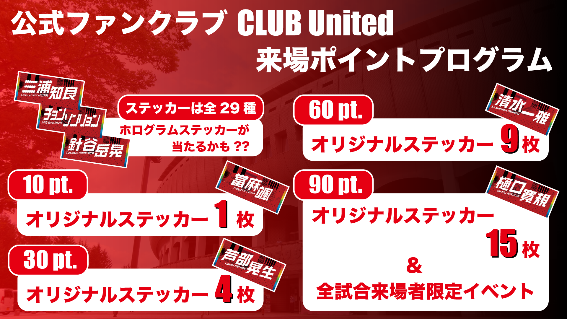 公式ファンクラブ『CLUB United』の来場ポイントプログラムが決定しましたので、お知らせいたします。