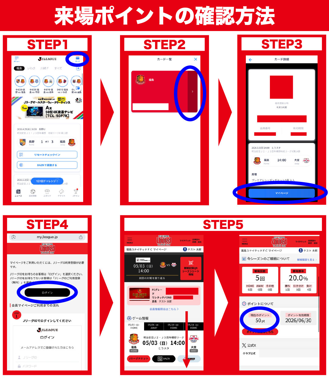 1. スタジアム場外ファンクラブブースにて、ご自身の会員証をご提示ください。