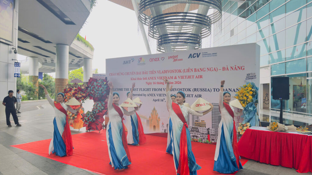 On April 16, 2026, Da Nang officially welcomed its first flight from the Russian market, operated by ANEX VIETNAM TRADING AND TOURISM CO., LTD. in coordination with VietJet Air. Flight VJ7989 from Vladivostok (Russian Federation) brought 220 international passengers to the city, marking an important milestone in the recovery and expansion of the Russian market – one of Da Nang’s key strategic visitor segments.