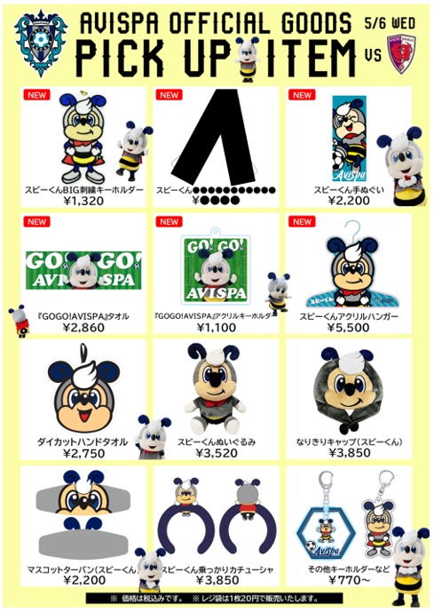 ぜひ5/6(水・休)京都戦にお越しの上、スビーくんグッズを身に着けて熱い応援をお願いいたします!