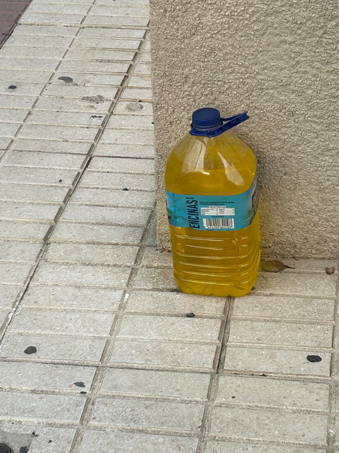 Twitter Pinterest Facebook Tumblr LinkedIn Bluesky Reddit Threads 歩道にある黄色い液体のボトル: その用途についての仮説についてコメントしてください。 Spain